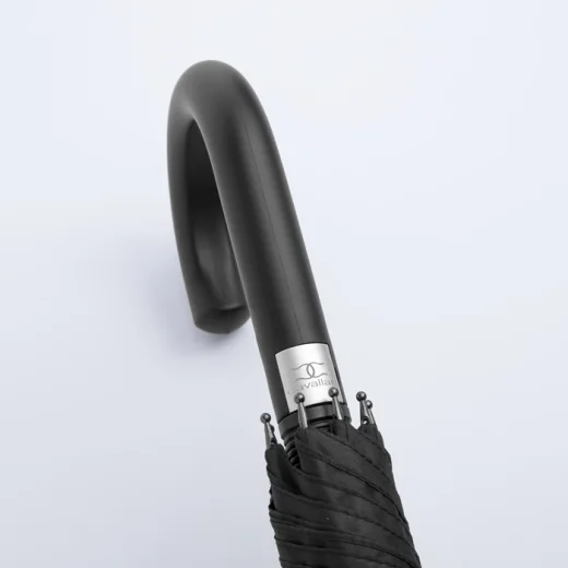 maxi ombrello automatico sistema di apertura con meccanica di alta qualità struttura in fibra di vetro fusto e puntale in metallo nero fusto disegno fibra di carbonio chiusura con velcro e custodia